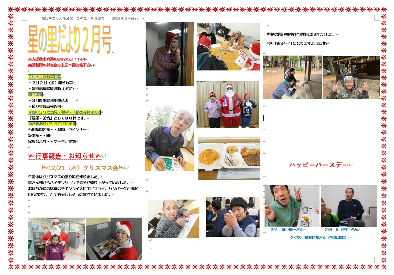 星の里だより2月号(2024/2/5)
