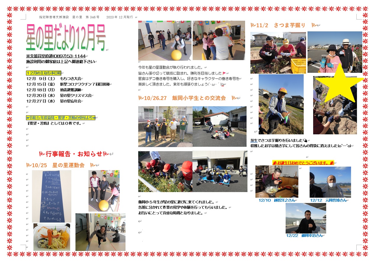 星の里だより12月号(2023/12/6)