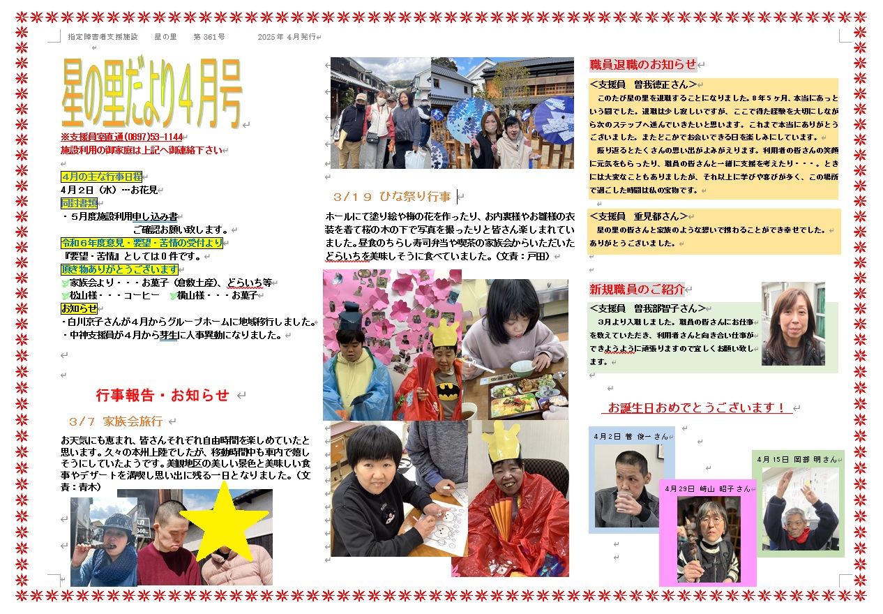 星の里だより4月号(2025/4/8)